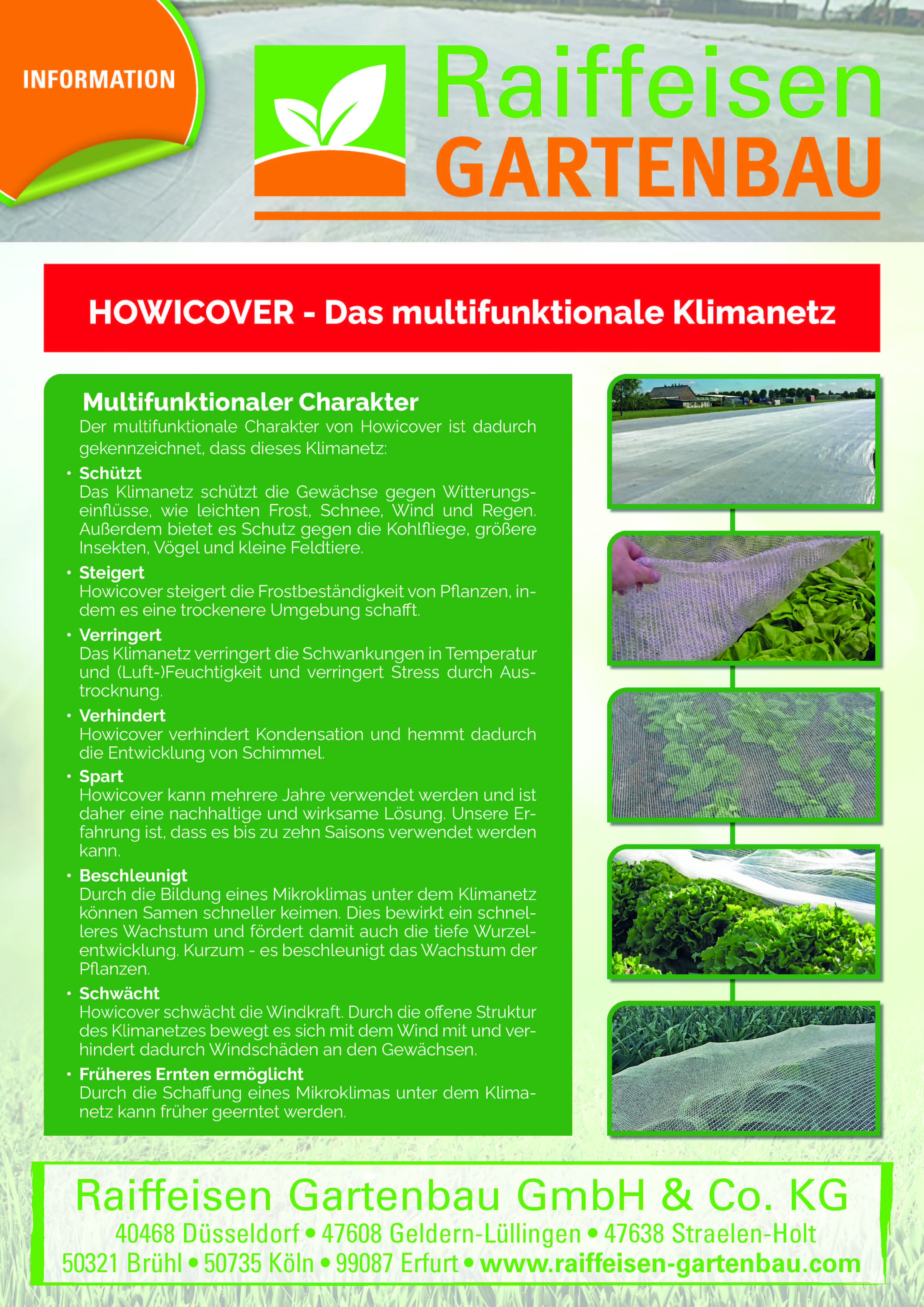 Die Raiffeisen Gartenbau GmbH & Co. KG ist ein deutschlandweit führender Bedarfsartikellieferant für Betriebe aller gärtnerischen Fachsparten. Fundierte Beratung durch ein qualifiziertes Team und vielfältige Serviceleistungen sind der Ausgangspunkt für eine bestmögliche Betreuung und optimale Versorgung unserer Kunden. Als Vollsortimenter bieten wir mit Produkten aller namhafter Hersteller Lösungen für alle Bereiche des betrieblichen Alltags.